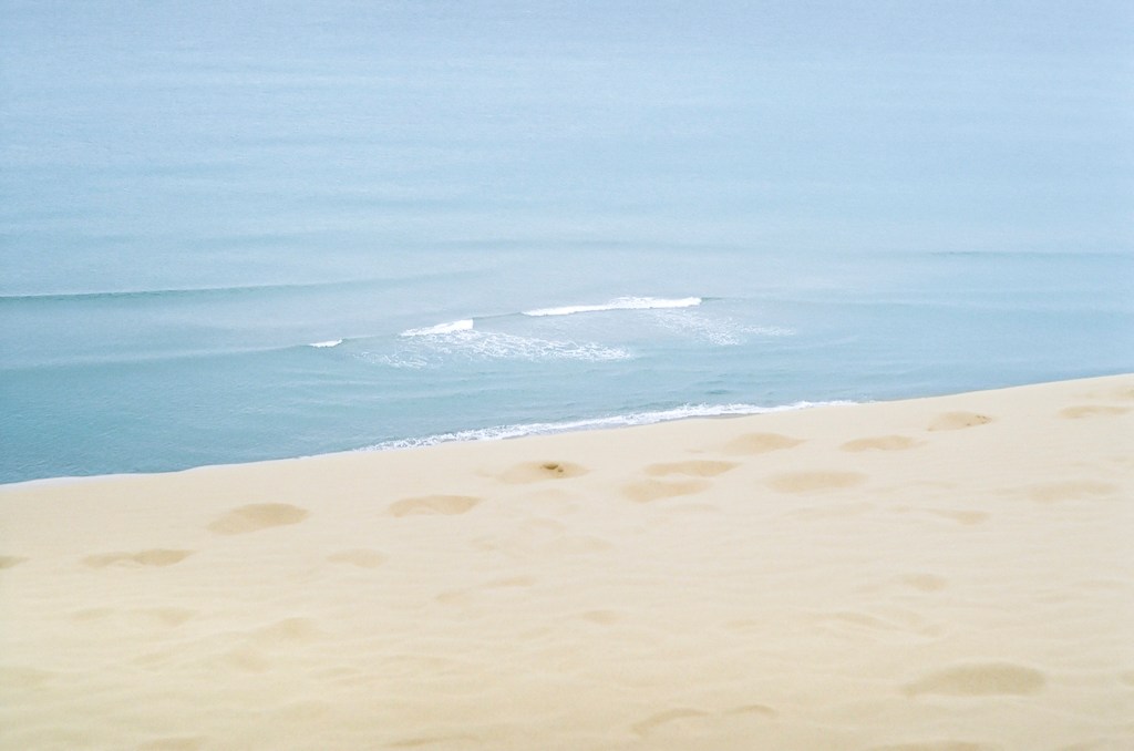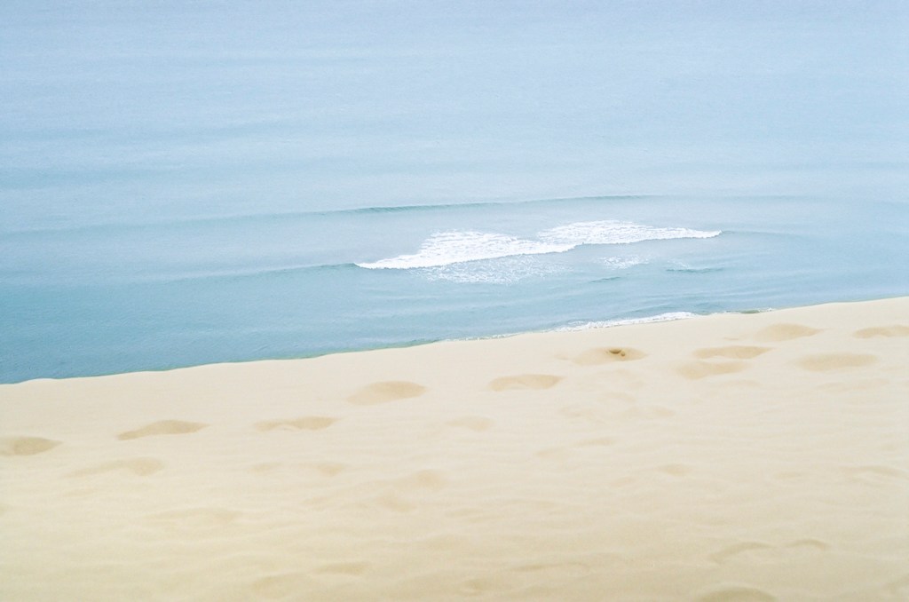砂と水は微粒子の集まりである。地平線と水平線は、一粒一粒が溶けるように積層され、形作られたものである。私たちはその一粒一粒を大して気にせず、地平線と水平線を眺めている。