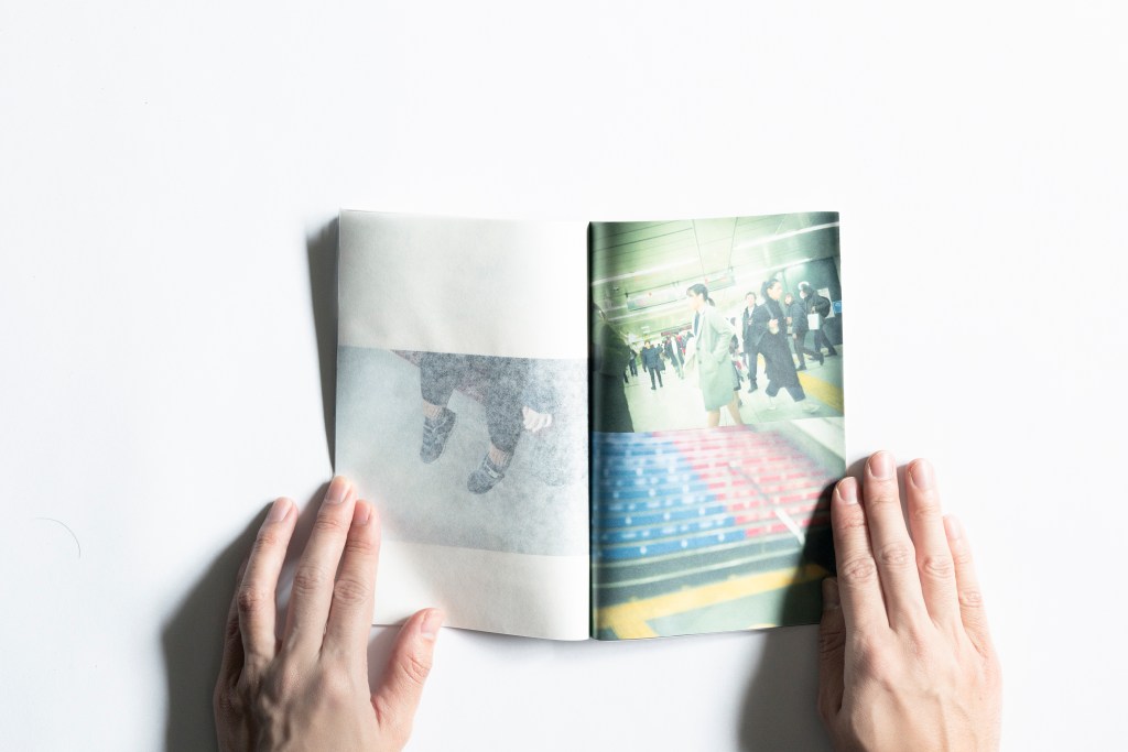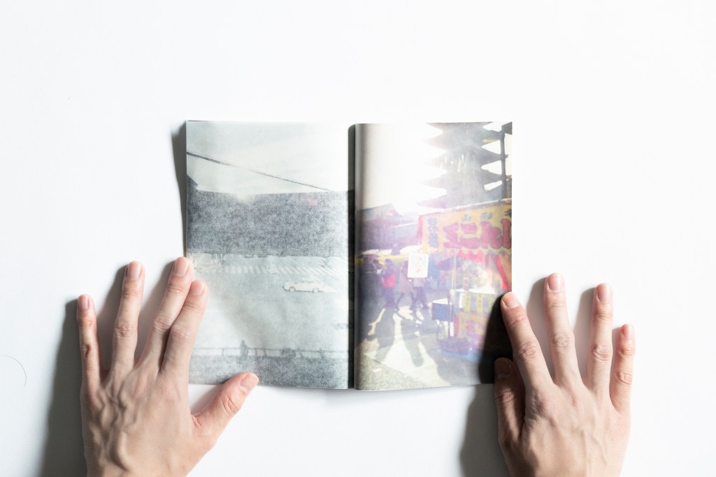・印刷では、インクの流量を多めにして、裏写りをあえて強めに残すことで、日々まちの中を行ったり来たりするときの記憶の曖昧さや残像感を表しました。