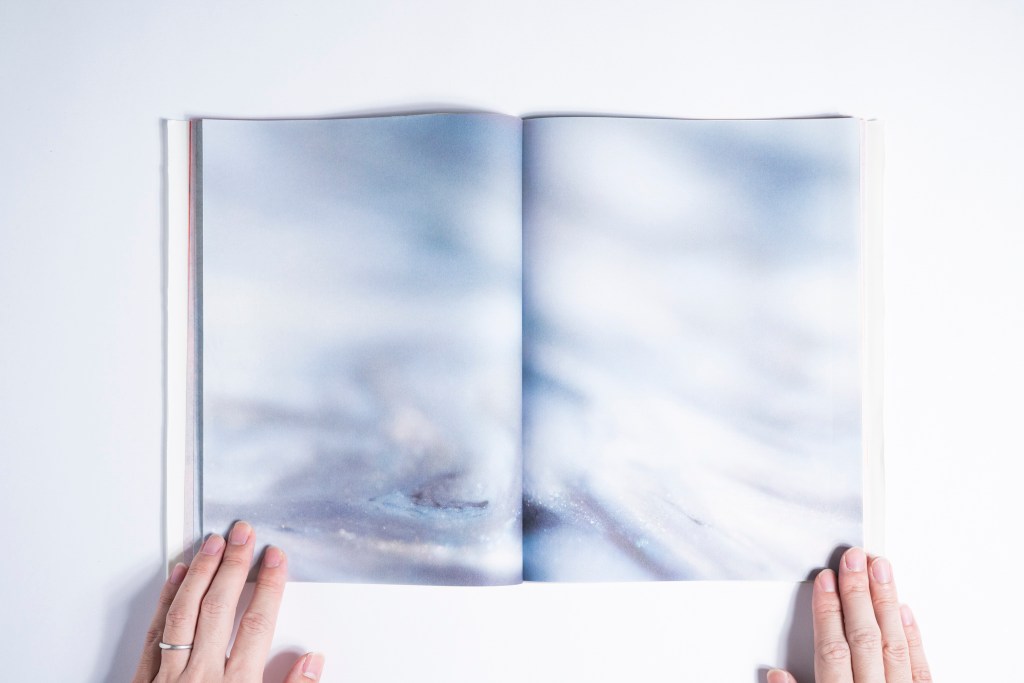 ・見ようと思って袋とじを開くと、半分に断裁されてしまい、元の写真は元の写真のままには見えず、「見ていること」と「撮影された写真」とのそれぞれのズレや間を割き、明らかにするような仕掛けとしました。