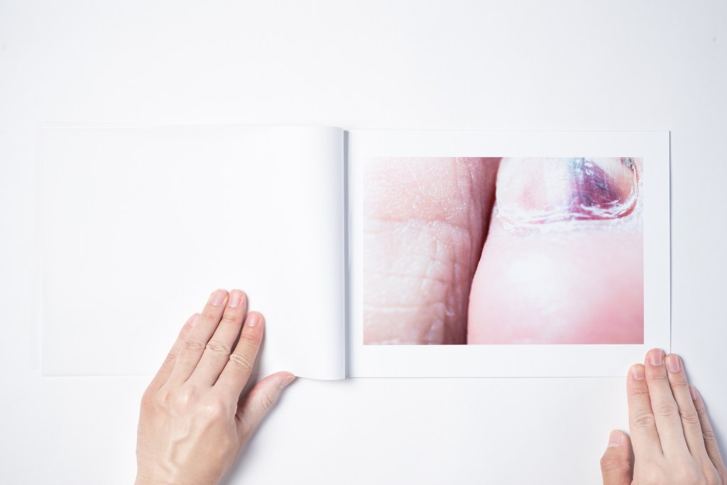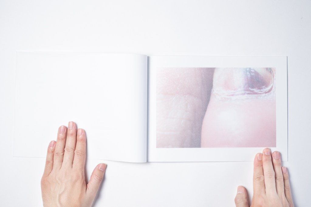 ・また、製本に際しては、トレーシングペーパーを写真のページの間に挟むことにより、身体に触れることのできないもどかしさを表現しています。